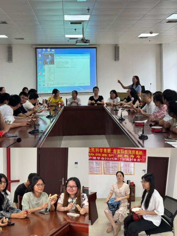 理论培训结束后,王红梅副院长带领全体学员开展了一场别开生面的心理团辅游戏活动。在“情绪接力”游戏中,同学们通过肢体动作传递情绪,在轻松愉快的氛围中释放压力、宣泄焦虑,增强了彼此的信任与理解。随后进行的音乐团辅活动中,大家共同合奏乐器,用旋律传递温情与支持,在节奏与和声中感受集体凝聚力的滋养,体验艺术疗愈的力量。
