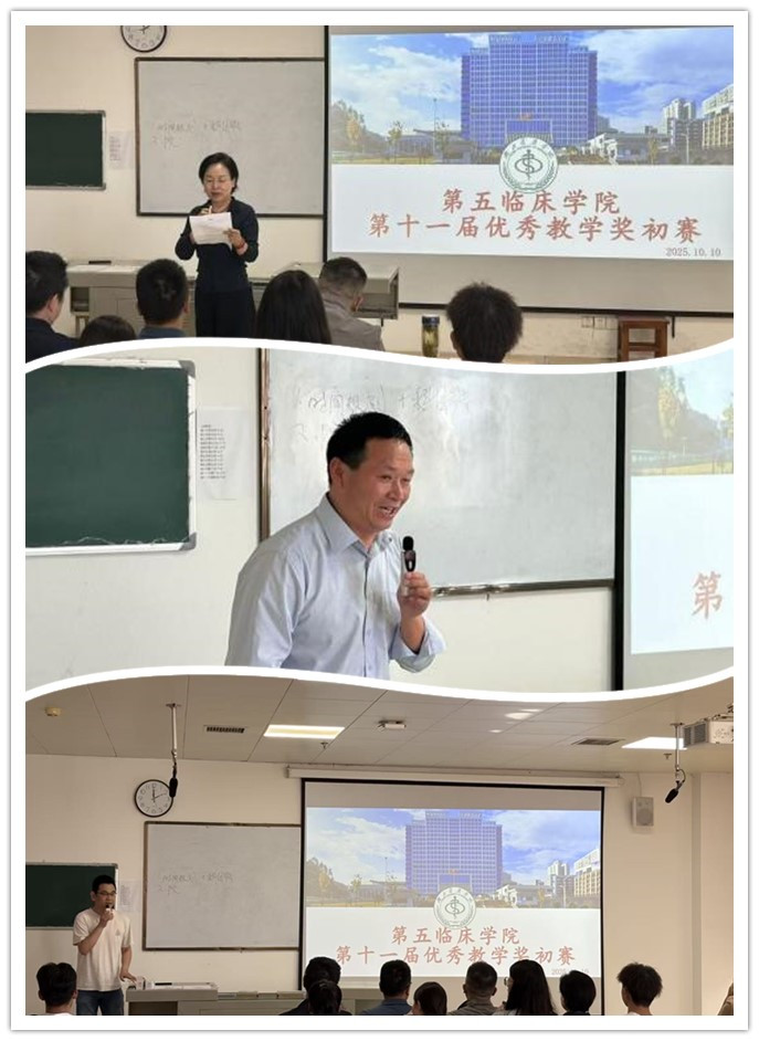 (本网讯:通讯员涂雨航)10月10日,第五临床学院优秀教学奖竞赛在随州校区明德楼301教室顺利举行。学院党委书记陈飞及各教研室教师代表到参加活动,比赛共有16名优秀教师参加,第五临床学院副院长郑伟主持活动。