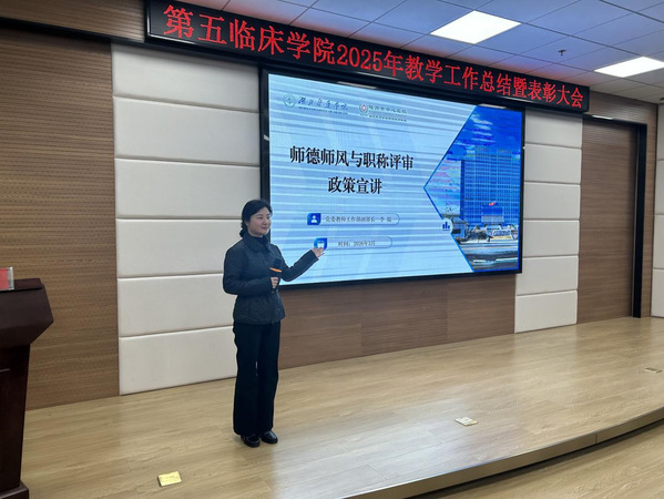 (本网讯通讯员 白梅)3月5日下午,第五临床学院在随州中心医院勤政楼学术报告厅召开专题会议,聚焦教师职业发展与师德建设。会议由第五临床学院副院长郑伟主持,校党委教师工作部副部长李嫣应邀作专题宣讲。教职工代表参加了此次会议。