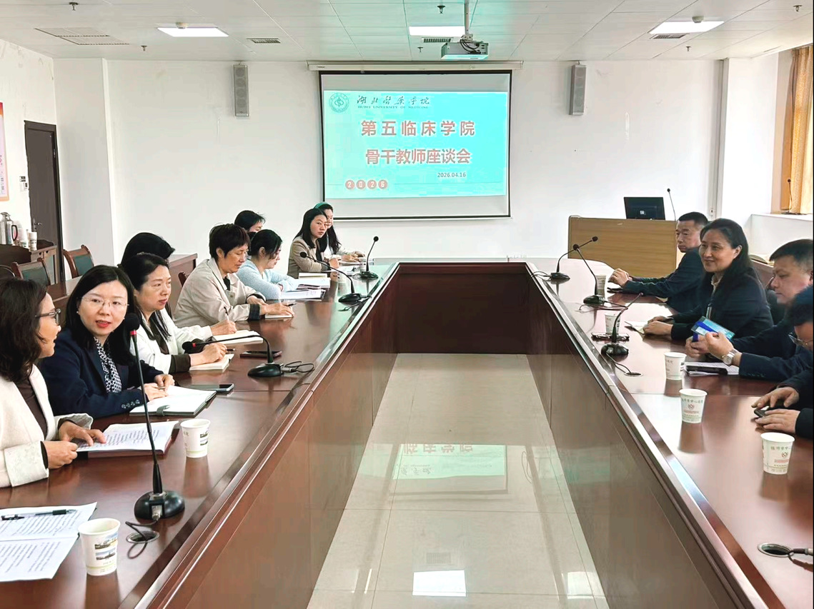 本网讯(通讯员白梅)为深入了解一线教师在教学实践中的思想动态、教学难点及发展需求,广泛听取对学校教育教学工作的意见建议,进一步强化校院协同联动,切实推动临床教学高质量发展,4月15日,校党委常委、副校长、统战部部长谭艳出席第五临床学院教师座谈会,与骨干教师代表开展面对面交流。第五临床学院党政领导班子成员及骨干教师代表参加了本次座谈会。